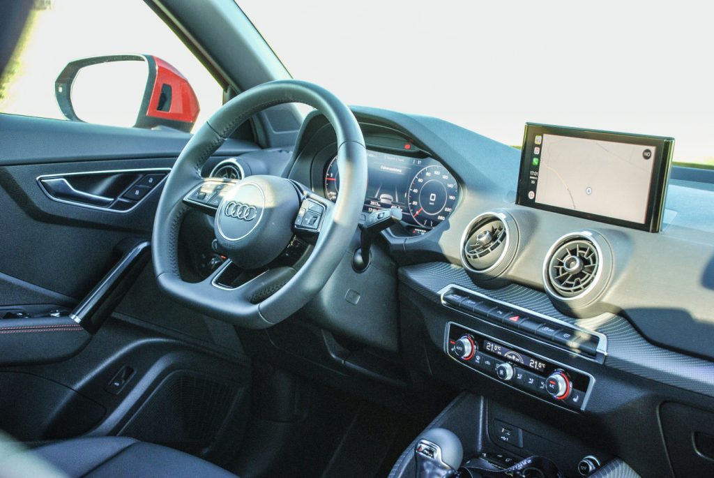 Nicht ganz dem hohen Preis unseres Testwagens entsprechend ist die Geräuschdämmung. Bei voller Beschleunigung und bei Autobahntempo dringen nämlich deutliche Motor-, Wind- und Abrollgeräusche in den Innenraum. Hier zeigt der Q2 nicht die erwartete Premiumqualität. Und dennoch entspricht der Q2 mit hohem Einstieg, erhöhter Sitzposition und großem Gepäckraum einem typischen SUV.