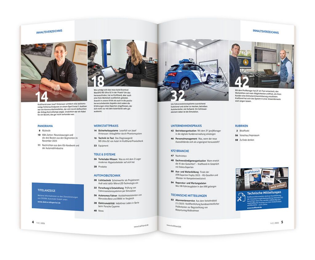 Am Samstag den 24. Januar erscheint die Print- und am Donnerstag 22. Januar die Onlineausgabe der Krafthand 1-2/2026. Hier eine Vorschau auf die Themen: