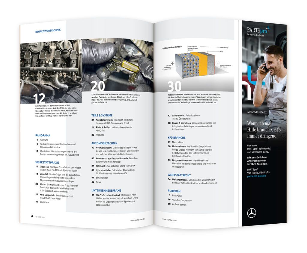 Am Samstag den 27. September erscheint die Print- und am Donnerstag 25. September die Onlineausgabe der Krafthand 18-19/2025. Hier eine Vorschau auf die Themen: