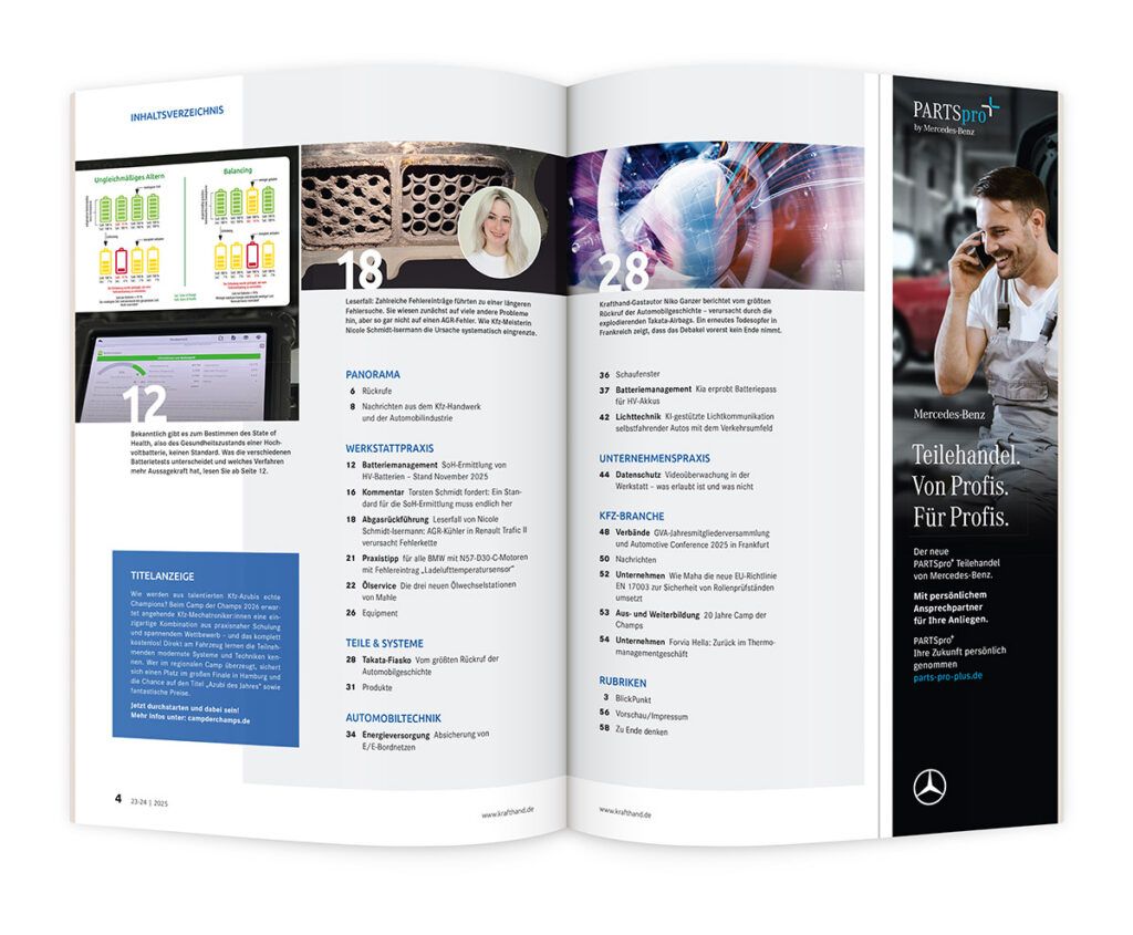 Am Samstag den 20. Dezember erscheint die Print- und am Donnerstag 18. Dezember die Onlineausgabe der Krafthand 23-24/2025. Hier eine Vorschau auf die Themen: