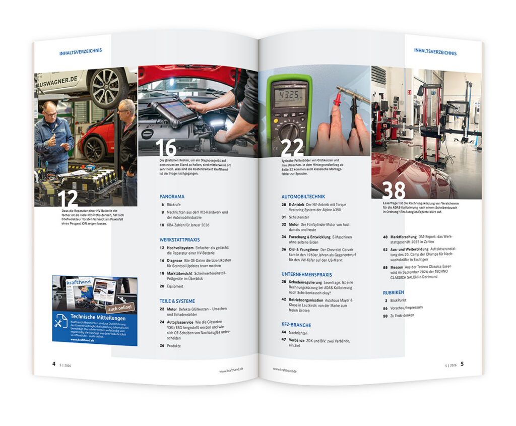 Am Samstag den 7. März erscheint die Print- und am Donnerstag 5. März die Onlineausgabe der Krafthand 5/2026. Hier eine Vorschau auf die Themen: