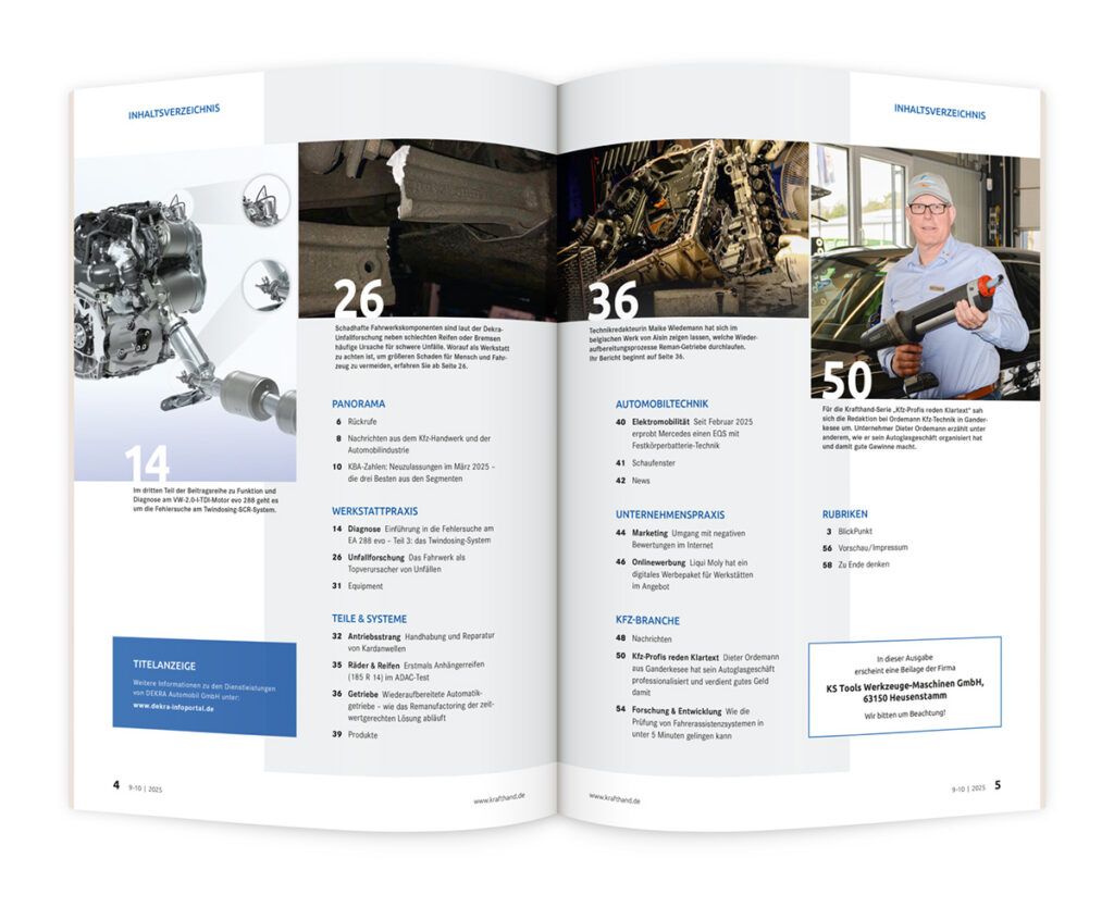 Am Samstag den 17. Mai erscheint die Print- und am Donnerstag 15. Mai die Onlineausgabe der Krafthand 9-10/2025. Hier eine Vorschau auf die Themen: