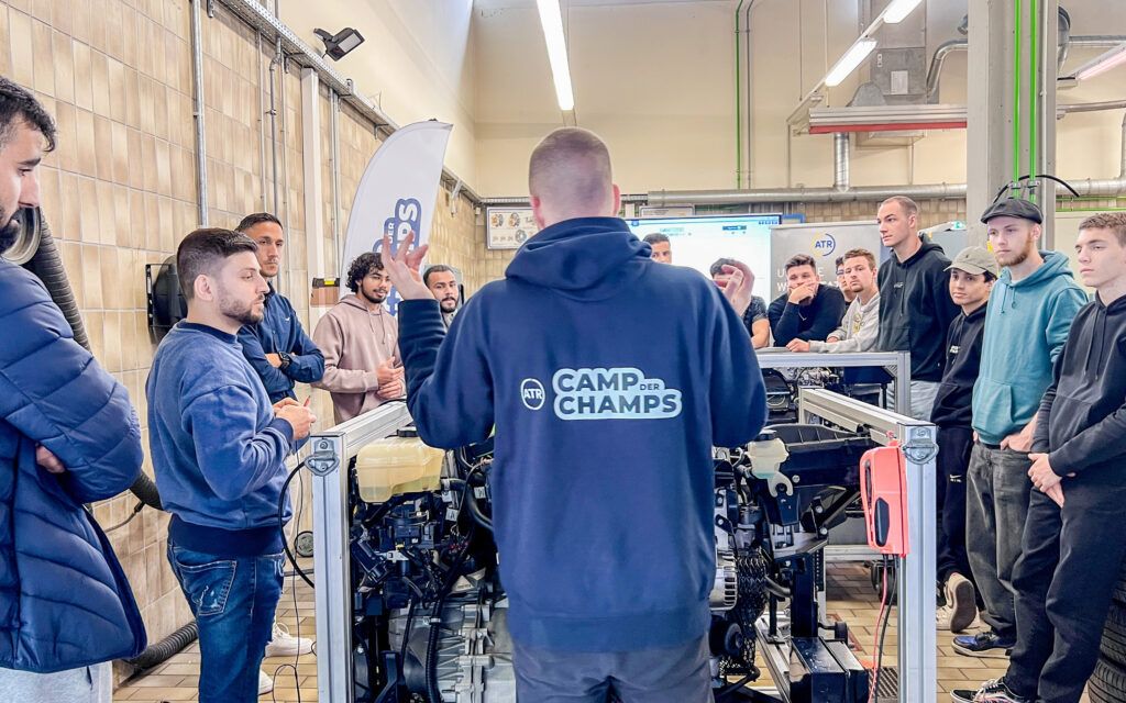 Mit dem Camp der Champs (Anmeldemöglichkeit hier https://khme.de/anmeldung_cdc) transferiert die ATR Service GmbH nun erstmals ihr Know-how aus der Weiterbildungsinitiative in den Berufsschulunterricht. Dazu machten die Experten des Formats im Mai 2025 Station an der Gewerblich-Technischen Schule (GTS) Offenbach. Dort nahmen 14 Kfz-Auszubildende teil und erprobten ihr Wissen in realitätsnahen Fehlersuchszenarien direkt am Motor. Ziel des Projekts: Junge Talente durch praxisorientierte Trainings und einen motivierenden Wettbewerb fördern.
