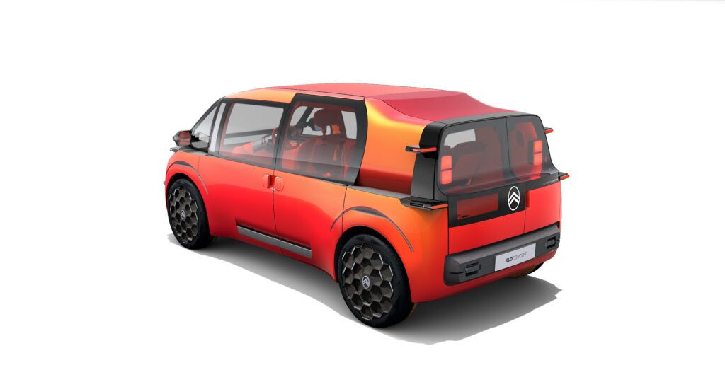 Ein wahres Multitalent soll das mit 100 Prozent elektrischer Architektur versehene Konzeptfahrzeug ELO von Citroёn sein. Auf 4,10 m Länge bietet es mit zentral angeordnetem Fahrersitz Platz für vier Personen, plus zwei zusätzliche ausklappbare Sitze, plus Schlafraum für zwei Personen. Eine ausfahrbare Leinwand sorgt für Kinofeeling. Eine gute Sicht ermöglicht die 180°-Windschutzscheibe.