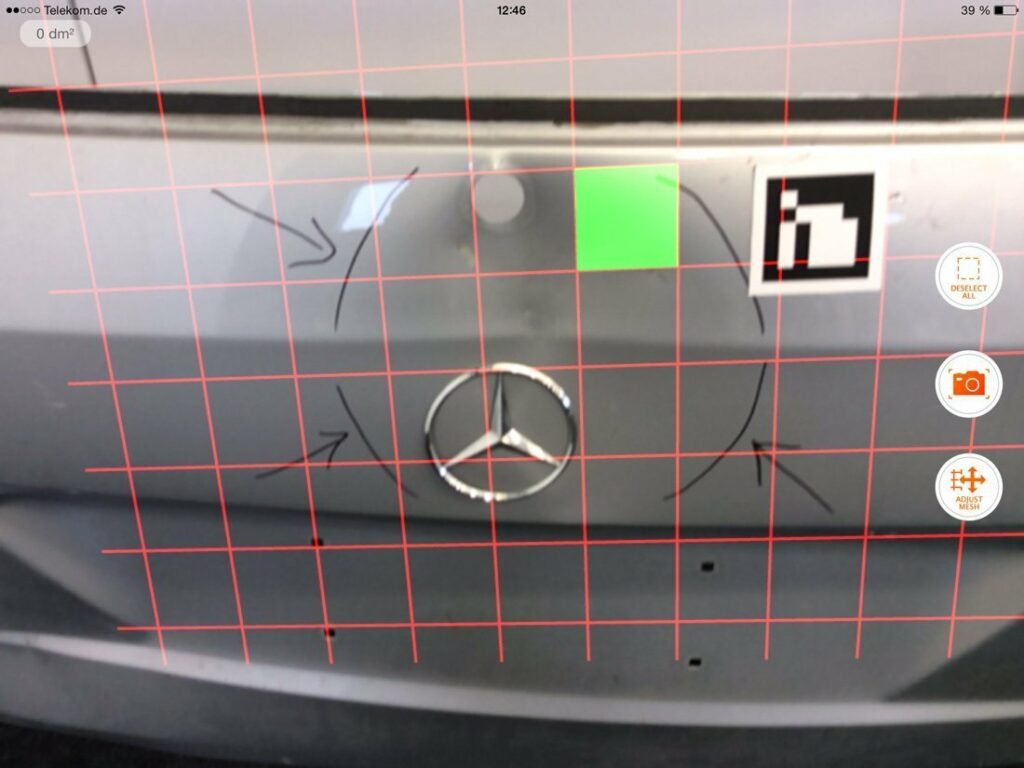 Die DAT hat ihre Software Silver-DAT um eine neue Funktion erweitert: Senkrechte und schräge Flächen lassen sich künftig per Smartphone oder Tablet-PC vermessen und berechnen. Dazu wird am Fahrzeug ein Magnetsticker (ähnlich einem QR-Code) angebracht, der beim Fotografieren automatisch ein Raster erzeugt. Die zu bearbeitende Fläche lässt sich anhand des Rasters manuell auswählen und über die SilverDAT-Reparaturkostenkalkulation automatisch berechnen.