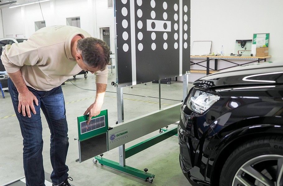 Präzise Kamerakalibrierung für moderne Fahrerassistenzsysteme: Das CSC-Tool von Hella Gutmann zeigt am Audi Q7, wie Frontkameras sicher und exakt kalibriert werden.