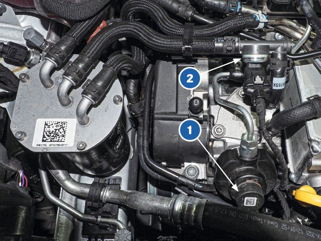 Im ersten Beitrag des Dreiteilers zum EA-288-evo-Motor von VW dreht sich alles um Sensoren und Aktoren der Common-Rail-Einspritzanlage, die nun im Kraftstoffvorlauf über einen Temperatur- und Drucksensor verfügt (Bild 2).