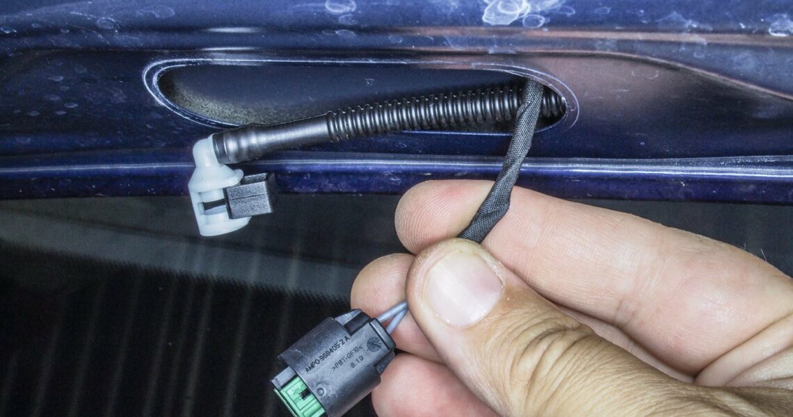 Werkstattprofis erkennen, ob ein Kundenauto beheizbare Düsen hat oder nicht. Am besten sieht man es an der Düse selbst: Ist sie beheizt, geht neben dem Wasserschlauch noch eine Elektroleitung zur Düse. So lassen sich leicht die Fahrzeuge ausfindig machen, für die eine Aufrüstung infrage kommt. Wie einfach das geht, hat KRAFTHAND bei einem Musterverbau an einem VW Touran 5T ausprobiert.