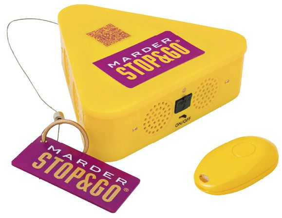 Um Marder abzuwehren, haben die Spezialisten von Stop & Go ein neues Gerät auf den Markt gebracht: das ROOFTOP. Dieses akkubetriebene System schützt Fahrzeuge, ohne dass es ins Fahrzeug installiert werden muss. Vielmehr lässt es sich mit Hilfe eines Magnetfußes auf einer waagerechten sauberen Fläche platzieren und per Fernbedienung aktivieren. Danach erzeugen fünf ringförmig angeordnete Piezolautsprecher zur Marderabwehr einen 360°-Ultraschallkegel mit einem Abstrahlwinkel von über 170° pro Seite.