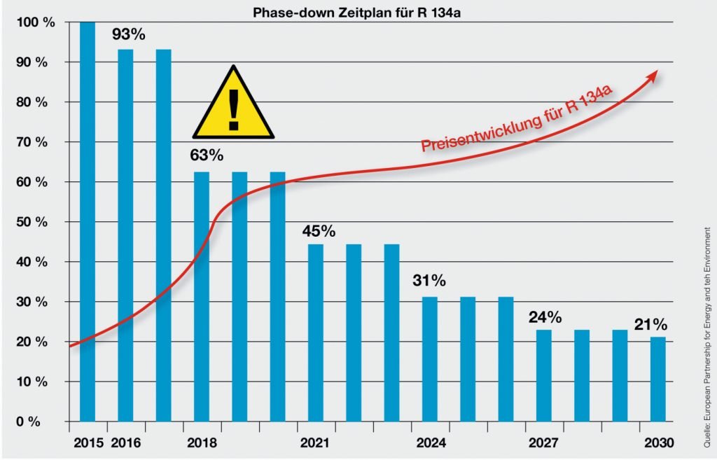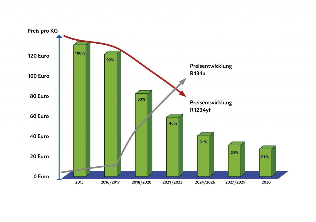 Laut dem Experten für Klimaanlagen und Trainer für Thermomanagementsysteme Andreas Lamm sind die Preise des Kältemittels R134a von netto acht Euro pro Kilo auf netto 35 Euro pro Kilo gestiegen. Das entspreche einer Preissteigerung von mehr als 400 Prozent!