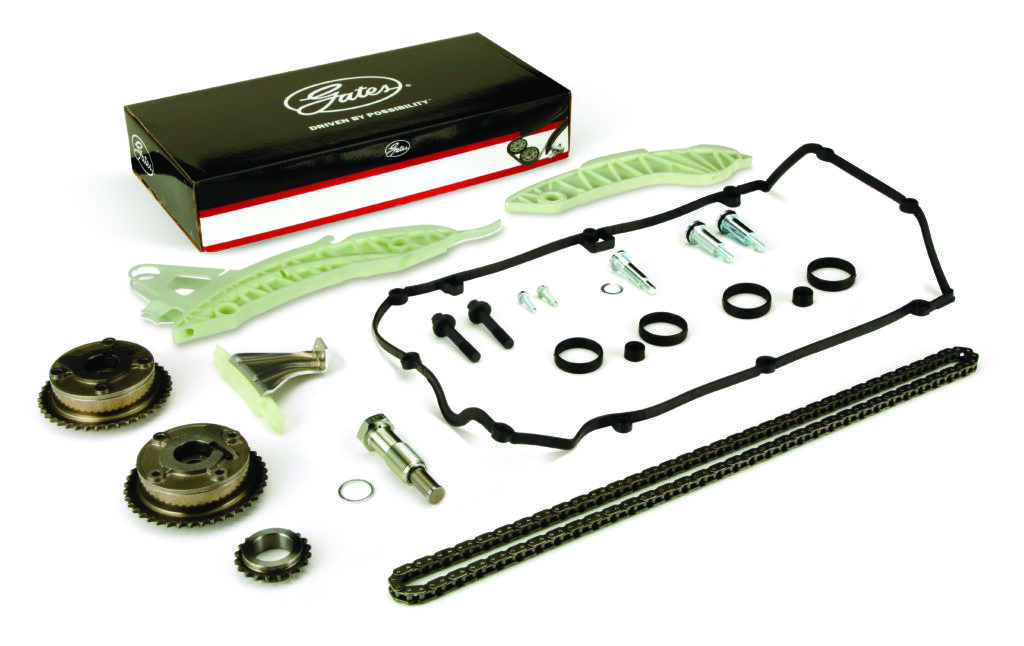 Seit Kurzem bietet Gates auch Steuerkettensätze an, die nach eigenen Angaben Erstausrüsterqualität haben. Abhängig vom Modell sind im Satz enthalten: Steuerkette, Kettenspanner, Kettenführung, Ritzel und Nockenwellenversteller sowie Anbauteile zur variablen Ventilsteuerung, etwa eine VVT-Magnetspule, weiteres Zubehör.
