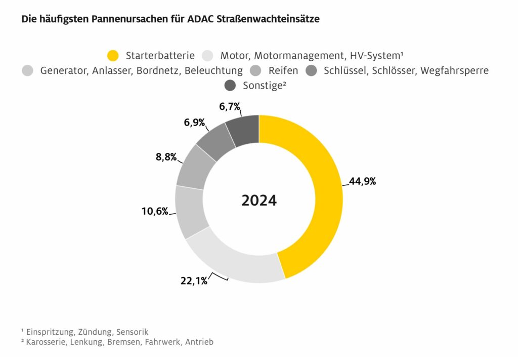 Der ADAC analysierte die Pannen von 159 Fahrzeugmodellen im Jahr 2024 und listet das Ergebnis in der Pannenstatistik 2025 auf. Insgesamt wurde ein erneuter Anstieg gegenüber dem Vorjahr auf mehr als 3,6 Millionen Einsätze verzeichnet.