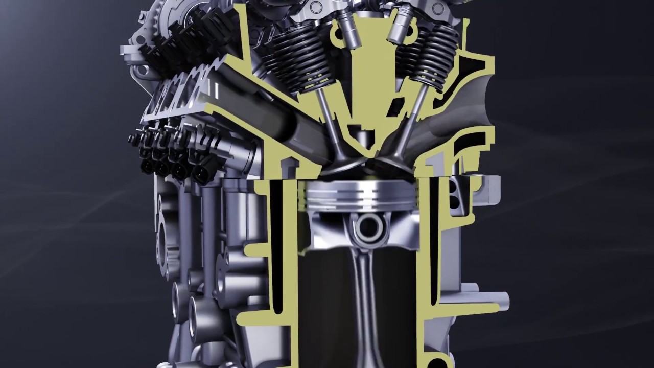In der nebenstehenden Grafik ist gut zu erkennen, dass der Langhuber einen vergrößerten Winkel zwischen Ein- und Auslassventil besitzt. Der größere Winkel bewirkt einen flacheren Ansaugweg und hat den Effekt, dass die Luft walzenförmig in den Verbrennungsraum strömt. Toyota spricht hier vom sogenannten Tumble-Flow. Neben einem respektablen Verdichtungsverhältnis von 13:1 und einer Mehrpunkt-Direkteinspritzung haben die Entwickler bei Toyota auch einen im Durchmesser vergrößerten und in der Form veränderten Einlassventilsitz verwendet. Diese Änderungen sollen ebenfalls zur Strömungsoptimierung beitragen. Obendrein wurde der Ventilsitz mit einer neuartigen Lasertechnik geglättet, um ein verbessertes Taumelverhältnis und einen erhöhten Luftströmungskoeffizienten zu erreichen. Das Resultat: Eine höhere spezifische Leistung bei geringerem Kraftstoffverbrauch und weniger Abgasemissionen.