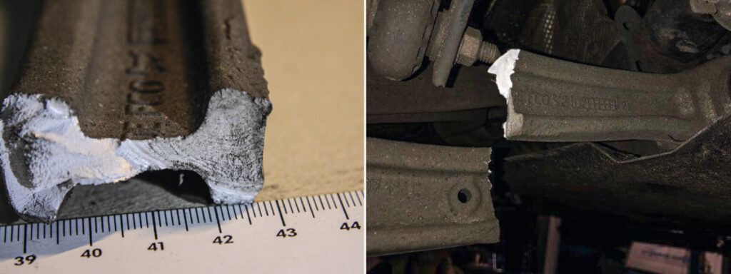 Gebrochene Querlenker kommen in den folgenden Beispielen 1 und 2 vor – jedoch war er nur in einem Fall die exakte Ursache. Im anderen ist er als technischer Mangel lediglich der stark vermutete Unfallauslöser.