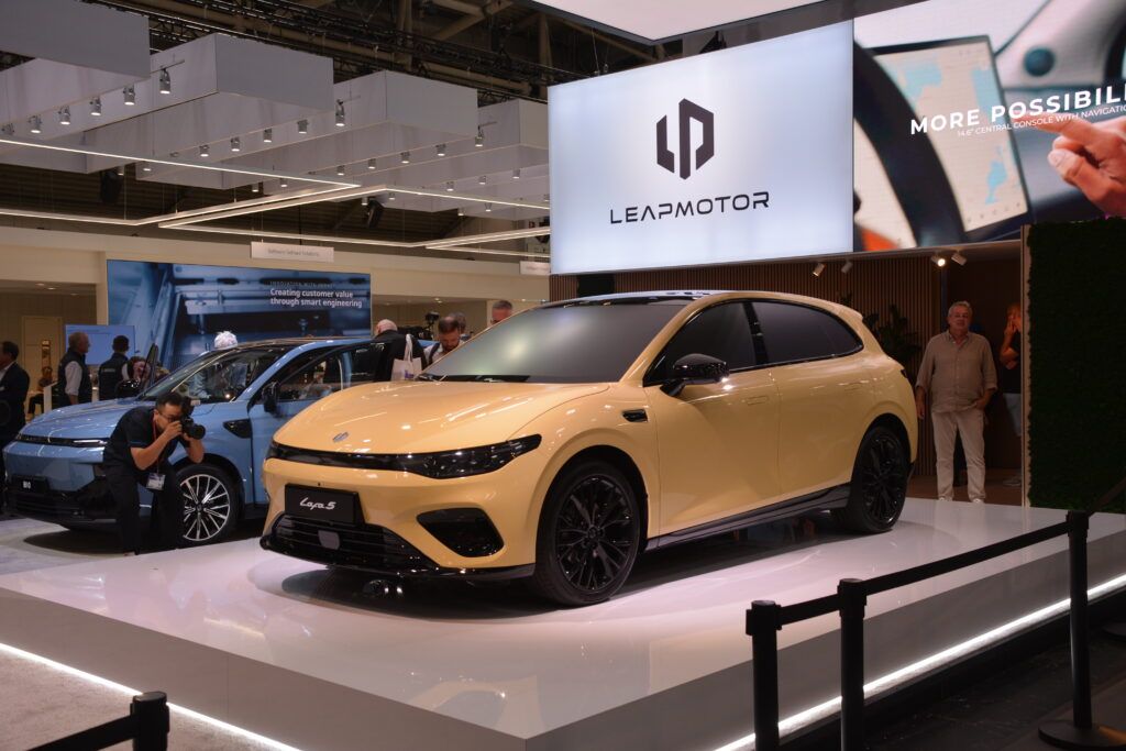 Mit dem globalen Debüt des B05 präsentiert Leapmotor ein sportlich gezeichnetes kompaktes Elektroauto, das urbane Käuferschichten ansprechen soll. Zu den technischen Highlights zählen rahmenlose Türen, die in Kombination mit den markanten 19-Zoll-„Swift-Wing“-Leichtmetallfelgen die sportliche DNA des Kompaktklässlers unterstreichen. Des Weiteren untermauert Leapmotor seine globalen Expansionspläne, indem der Elektro-SUV B10 (im Bildhintergrund) ebenso seinen offiziellen Einzug in den europäischen Markt feierte.