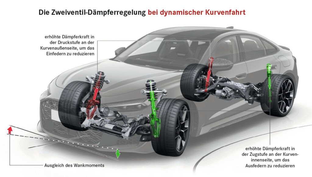 Sportliche Autos definieren sich besonders über ihre Fahrdynamik. Mindestens so wichtig wie reichlich Motorleistung ist dafür ein Fahrwerk, mit dem sich Performance-Modelle sportlich durch Kurven jagen lassen und das sie bei Highspeed auf Autobahnen sicher und satt auf der Straße liegen lässt. Um diesen Anforderungen gerecht zu werden und zugleich den Komfort nicht aus den Augen zu verlieren, gehören seit Jahren adaptiv regelbare Dämpfer zum guten Ton. Und bei Audi natürlich auch der Quattro-Antrieb, den die Ingolstädter nun technologisch auf ein neues Level heben.