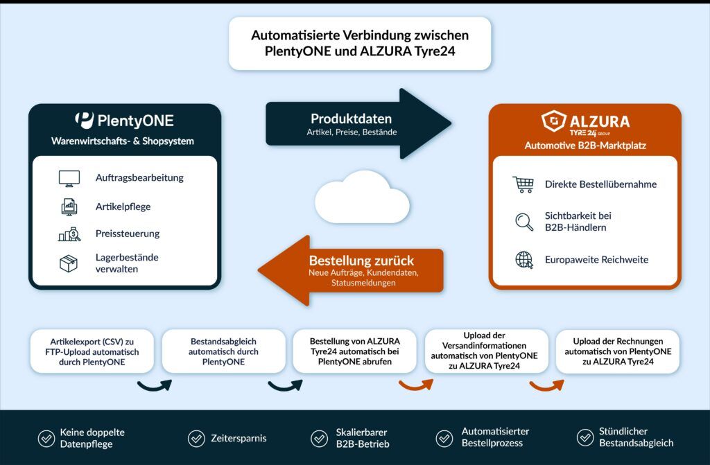 Bei der Teileplattform Alzura steht ab sofort in Deutschland und Österreich eine neue Schnittstelle zur Verfügung, die das ERP- und Shopsystem PlentyONE (vormals plentymarkets) direkt mit dem B2B-Marktplatz verbindet. Wie das Unternehmen weiter mitteilt, sollen Anbieter aus der Automotivebranche damit einen weiteren, vollständig automatisierten Vertriebskanal bekommen. Für einen reibungslosen Ablauf synchronisiert die neue Schnittstelle Produktdaten, Verfügbarkeiten und Bestellungen vollautomatisch zwischen PlentyONE und Alzura – ohne Medienbrüche oder manuellen Aufwand.