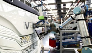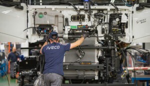 Moderne Produktionsabläufe im Lkw-Bau sind digitalisiert und auf Effizienz, Flexibilität sowie Nachhaltigkeit ausgerichtet. Die Automatisierungsgrad ist jedoch längst nicht so hoch wie im Pkw-Bereich. So wird bei IVECO in Madrid auch verhältnismäßig viel Hand angelegt. Dennoch stellt sich die Produktion aufgrund der hohen Fahrzeugvarianz komplex dar. So wird nur durchschnittlich jede 3,2 Jahre exakt das gleiche Fahrzeug gebaut. In Zahlen ausgedrückt: In Madrid werden neun Baureihen, 267 unterschiedliche Modelle mit 2.648 Einzeloptionen hergestellt. Das ergibt 41.524 Varianten. Dabei verbaut man pro Fahrzeug rund 30.470 Einzelteile. Dabei ist jedes größere Bauteil, jede angelieferte Baugruppe über QR- oder RFID-Codes rückverfolgbar (Traceability).