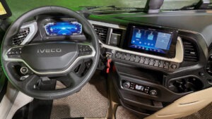 Ferner verfügt der neue S-Way über eine neue Hochleistungs-Motorbremse (HPED) von Jacobs Vehicle Systems (eine Kombination aus Dekompressions- und Abgas-Gegendruckbremse), einem HI-Tronix-Getriebe der zweiten Generation sowie eine längere Hinterachs-Übersetzung (2.17 / 2.06). Hinzu kommen eine aktive Lenkung, adaptive Cruise Stop&Go, neue kamerabasierte Rückspiegel, ein verbessertes GPS sowie ein neuer Tempomat mit unterschiedlichen Fahrmodi. Last but not least hat IVECO dem S-Way auch ein neues Exterieur- und Innenraumdesign spendiert. Letzteres gliedert die Fahrerkabine in den Driver-Bereich, den Ablagebereich sowie den Ruhebereich. Der neue S-Way, einer von vielen, ‚Made in Spain‘.