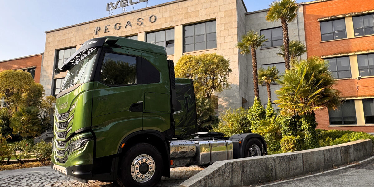 Einer der Lkw, der die Produktionshallen in Madrid verlässt, ist der neue IVECO S-Way in unterschiedlichsten Varianten. Das Fahrzeug kommt mit zahlreichen Neuerungen daher. So wird der neue XCursor 13 Motor von FPT Industrial verbaut. Er sorgt laut IVECO durch verschiedene innermotorische Maßnahmen für einen um zehn Prozent verringerten Kraftstoffverbrauch im Vergleich zum Vorgängermodell. Maximal leistet der Sechszylinder-Reihenmotor 580 PS bei 2.800 Nm. Die optimierte Luftzufuhr des XC-13 ermöglicht mit Hilfe eines elektronisch gesteuerten EVGT-Turboladers ein ‚Downspeeding‘. Das bedeutet, die Motordrehzahl kann bei gleicher Leistung reduziert werden, was den Kraftstoffverbrauch senkt, das Ansprechverhalten und die Verbrennungseffizienz verbessert. Tatsächlich konnte man das bei den Probefahrten im Hinterland von Madrid persönlich erfahren – Laufruhe und richtig ‚Durchzug‘ von unten. Dabei handelt es sich beim XC13 um einen Multifuel-Motor, der neben Diesel mit CNG, LNG, HVO100 und mit geringen Anpassungen, auch mit Wasserstoff betrieben werden kann.