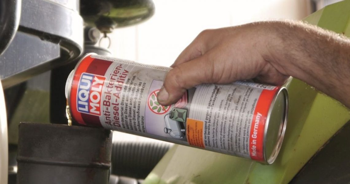 Anti-Bakterien-Diesel-Additiv von Liqui Moly wird in einen Tank geschüttet