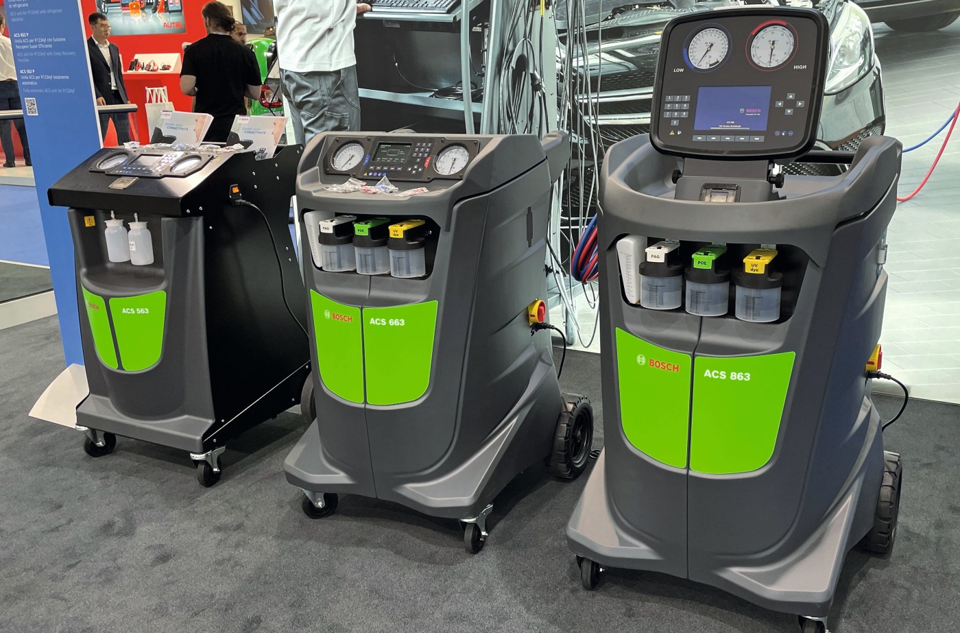 Bosch bietet auch unterschiedliche Klimaservicegeräte für gängige Kältemittel an. Bild: Georg Blenk