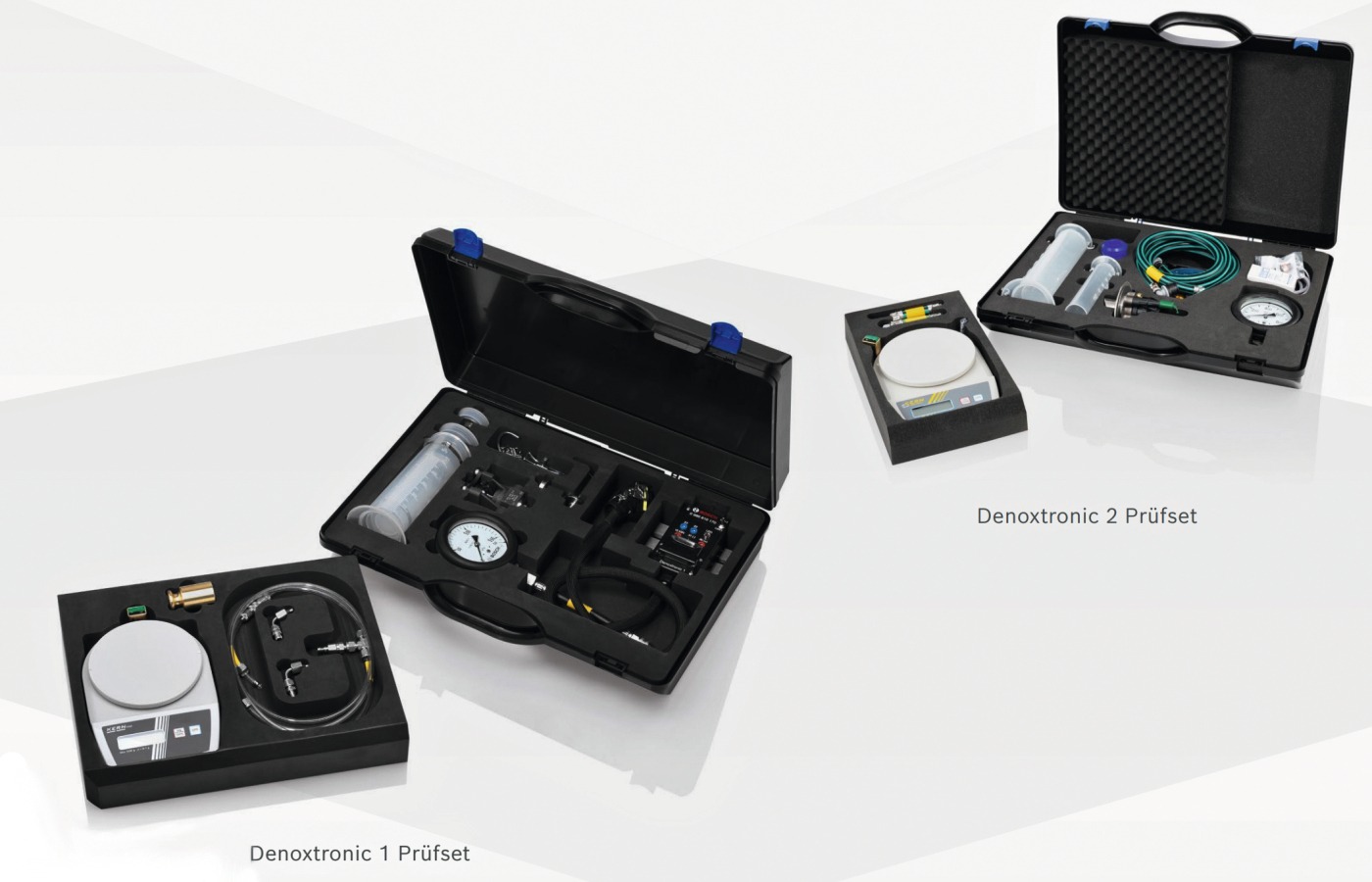 Für Arbeiten am Abgasnachbehandlungssystem der Denoxtronic 2.1 und 2.2 wurde das Denoxtronic-2-Prüfset entwickelt. Auch hier erfolgt die Diagnose direkt an der im Lkw eingebauten Komponente. Das Set wird zur Bewertung der hydraulischen Systemdichtheit sowie bei der Dosier- und Fördermengenprüfung verwendet.