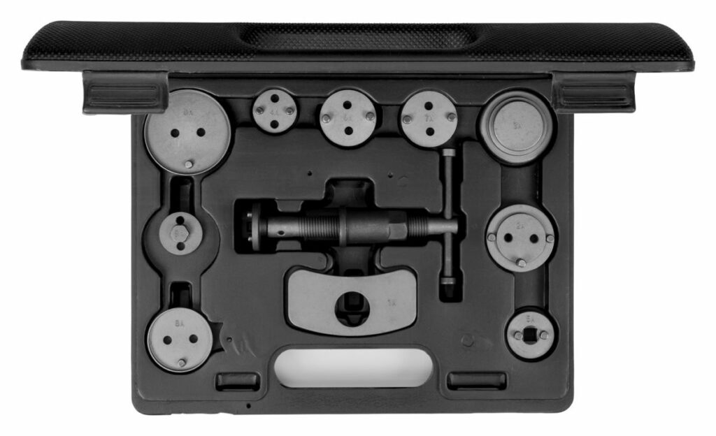Bremskolben von hydraulischen Scheibenbremsen‚ mal eben schnell‘ mit der Wasserpumpenzange oder dem Montiereisen zurückzusetzen, ist mehr als unprofessionell und kann die empfindlichen Staubschutzmanschetten des Druckkolbens beschädigen. Mindestens ebenso schnell, aber viel sicherer lässt sich diese Arbeit mit einem Bremskolbenrückstell-Werkzeug erledigen, wie es Carolus unter der Artikelnummer 0489.2011 im Sortiment hat. Den Produktinformationen zufolge soll sich dieser 11-teilige Satz vorrangig für schwimmend gelagerte Bremssättel mit oder ohne Feststellbrems-Einrichtung von nahezu allen gängigen Fahrzeugtypen vom Kleinwagen bis hin zum Transporter eignen. Durch die Druck- und Drehvorrichtung und die robusten Kolben-Rückstellplatten sollen sich selbst bereits schon etwas schwergängige Bremskolben mühelos zurücksetzen lassen.