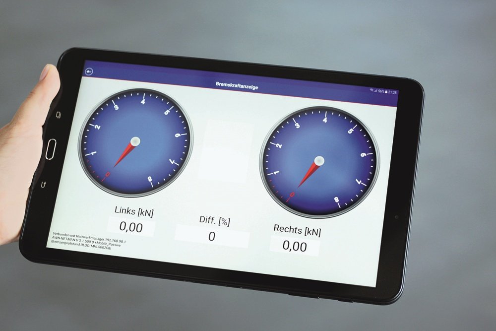 Die nachgerüstete ‚ASA-Livestream‘-Schnittstelle ermöglicht nicht nur nach dem 1. Januar 2020 die HU und SP-Prüfung, sondern bringt durch die direkte Anbindung an die ‚SP Plus‘-Software auch eine deutliche Arbeitserleichterung. Zudem lässt sich zusammen mit Cartesys ‚NPC Live Studio App‘ das Tablet zum Visualisieren der Bremswerte und zum Steuern des Prüfablaufs verwenden Bild: Cartesy.