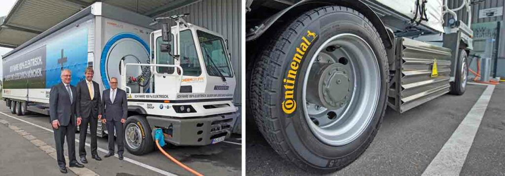 Conti unterstützt ein Pilotprojekt von BMW und deren Logistikpartner Scherm-Gruppe zur Förderung umweltfreundlicher Lkw. Im Rahmen des Projektes rüstet der deutsche Premium-Reifenhersteller einen Elektro-Lkw vom Typ Terberg YT202-EV mit seinen Reifen der Generation 3 sowie dem integriertem Reifendruck-Kontrollsystem Conti-Pressure-Check aus.