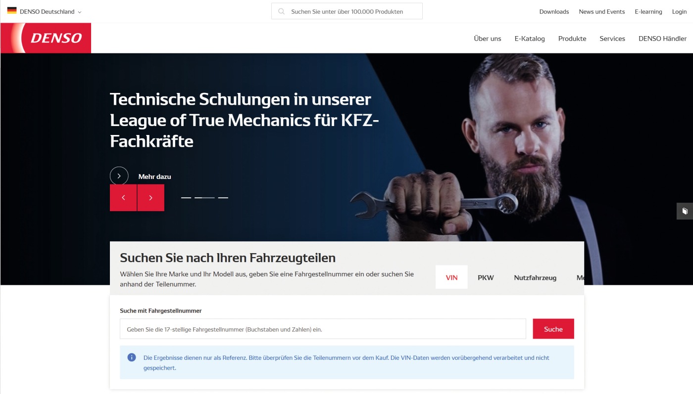 DENSO Aftermarket Europe hat eine neue VIN-Suchfunktion in den Online-Ersatzteilkatalog (DENSO E-Katalog) auf seiner Webseite integriert. Die Anwendung erlaubt nun die Identifikation passender DENSO-Ersatzteile über die Eingabe der 17-stelligen Fahrzeug-Identifikationsnummer (VIN). Damit möchte DENSO Werkstätten, Händlern und Endkunden eine deutlich vereinfachte, präzisere und zeitsparende Möglichkeit zur Teileidentifikation bieten.