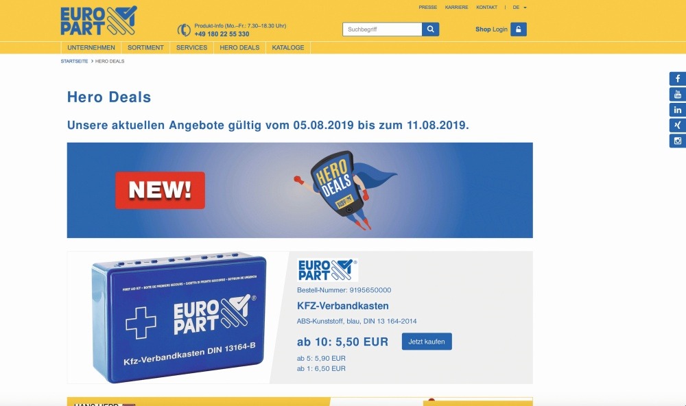 Auch die klassische Printbeilage ‚Favoriten‘ musste im Zuge der Digitalisierung weichen und wurde durch die ‚Hero Deals‘ abgelöst. In Anlehnung an die aktuelle Werbekampagne der ‚Werkstatthelden‘ stellt der ‚Hero‘ auf https://www.europart.net/de/herodeals wöchentlich sechs neue Angebote vor. Dauerhafte Publikationen wie etwa Kataloge wird es laut Olaf Giesen jedoch weiterhin geben: „Diese werden in der Regel über Jahre in den Werkstätten und Betrieben genutzt und mit Notizen versehen.“