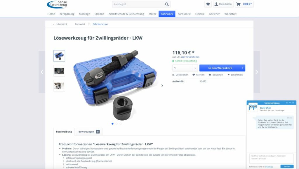 Darüber hinaus gibt es in dem neu gestalteten Shop neben den üblichen Möglichkeiten zur Kontaktaufnahme einen sogenannten ‚Live-Chat‘, um direkt mit den Werkzeugspezialisten des Unternehmens kommunizieren und eventuelle Fragen schnellstmöglich lösen zu können.