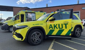 Krankenwagen und Notarztfahrzeug bei der Firma Falck in Kolding. Die gesamte Flotte ist mit Webfleet-Flottenmanagement-Technik ausgerüstet.