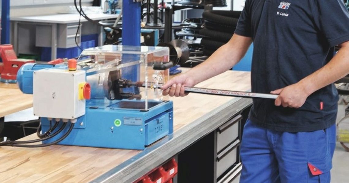 Fällt ein defekter oder verschlissener Hydraulikschlauch erst bei der Inspektion oder bei einer Reparatur auf, heißt es schnell reagieren. Erfahrungsgemäß ist es jedoch oft mühselig und zeitaufwendig, kurzfristig einen passenden Ersatzschlauch zu beschaffen. Eine hauseigene Hydraulikschlauch-Fertigung macht Werkstätten in solch einer Situationen unabhängig und vermeidet, dass sich die Reparatur verzögert oder gar stoppen muss.