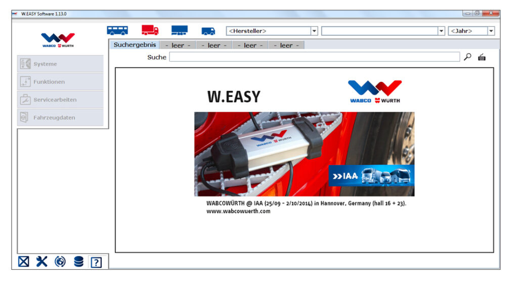 Wabco-Würth ist Partner für die Nutzfahrzeugdiagnose. Die W.EASY Diagnoselösungen werden vom 25. September bis 2. Oktober auf der IAA Nutzfahrzeuge in Hannover (Halle 16: WABCO Stand B10, Halle 23: Würth Stand E33) vorgestellt.