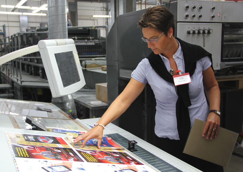 Krafthand-Grafikleiterin Stefanie Schmaus gibt den Druck der KRAFTHAND-Truck frei.