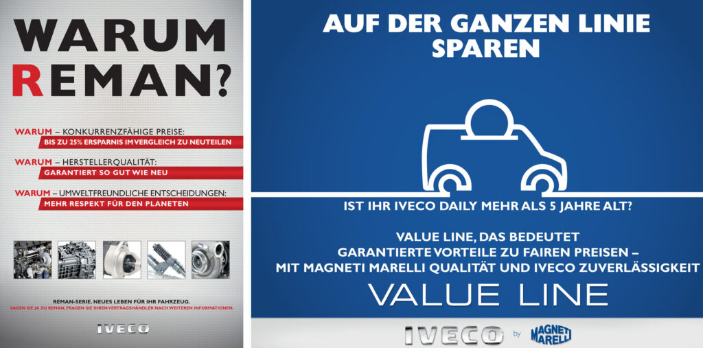 Mit der Reman-Serie an wiederaufbereiteten Ersatzteilen und der Value Line mit günstigen Teilen möchte Iveco seinen Kunden zwei Möglichkeiten zur zeitwertgerechten Reparatur bieten. So sollen die Wartungskosten für die Fahrzeuge reduziert und gleichzeitig deren Lebensdauer verlängert werden.