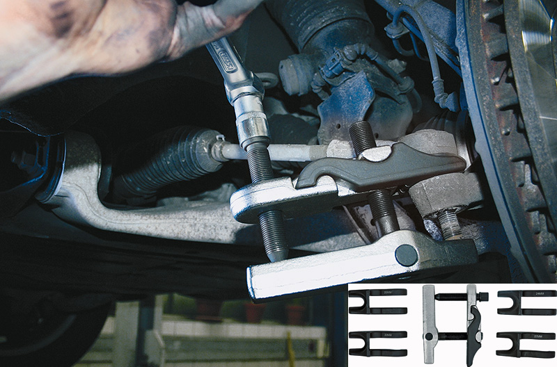 Der Austausch von Spur- und Lenkstangen gehört zum ‚Kleinen Einmaleins‘ bei der Achsen- und Fahrwerksreparatur. Doch das Ausdrücken der Kugelzapfen gestaltet sich bisweilen schwierig. Am einfachsten lässt sich diese Arbeit mit einem hydraulischen Ausdrückwerkzeug bewerkstelligen.