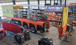 „Wir verfügen über einen eigenen Prüfstand inklusive eigener Spurvermessungsanlage. So gewährleisten wir, dass die Fahrzeuge schnellstmöglich wieder einsatzbereit sind. Sogar schwere Verwindungen des Rahmens können wir dank unserer 165 Tonnen Rahmenrichtbank rasch beheben. Zusätzlich reduzieren wir durch unser großes Ersatzteillager die Standzeiten erheblich“, so Stephan Neese.