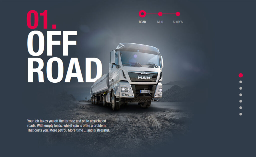 2005 konnte MAN erstmals den Wunsch nach mehr Traktion an der Vorderachse ‚auf Knopfdruck‘ erfüllen: Mit dem MAN-Hydro-Drive bediente das Unternehmen Kunden, die in manchen Fahrsituationen zusätzliche Traktion an der Vorderachse benötigen, ohne gleich einen Allrad-Lkw kaufen zu wollen.