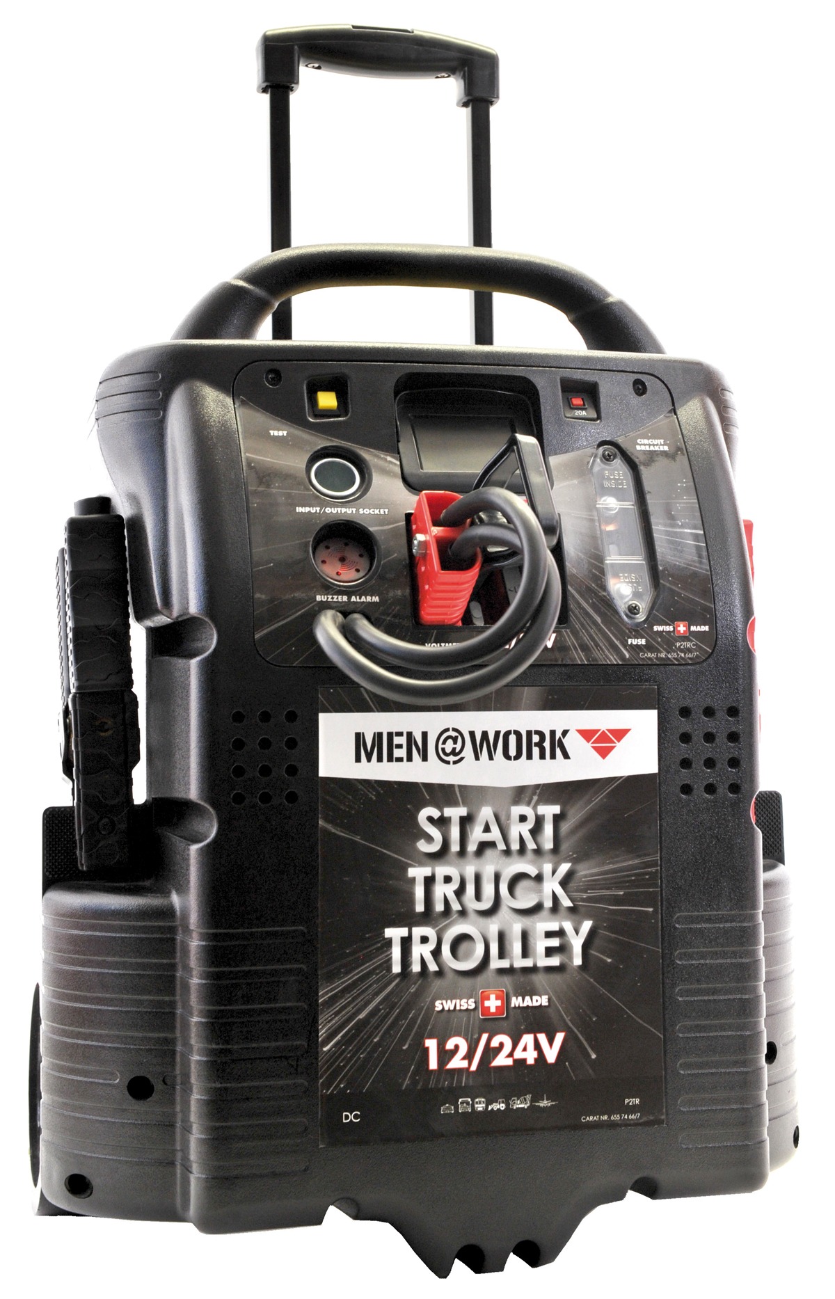 ‚Men at Work‘, die Werkstatt-Ausrüstungsmarke der Carat-Gruppe, hat mit dem ‚Start Truck P2 12/24V‘ einen leistungsfähigen Start-Booster im Programm, der speziell für den Alltag im Nutzfahrzeugbereich entwickelt wurde. Mit einem Ausgangsstrom von 3.100 Ampere sorgt das Gerät für kraftvolle Unterstützung beim Anlassen. Das ABS-stoßfeste Gehäuse macht den Booster widerstandsfähig gegen Stöße und raue Einsatzbedingungen. Dank des Trolley-Designs lässt sich der Start-Booster einfach transportieren. Ein automatisches Netzladegerät (230 V) sorgt dafür, dass die beiden integrierten Akkus jederzeit einsatzbereit sind. Dazu kommen Features, wie ein Kabel für den Zigarettenanzünder, eine vollisolierte Messing-Zange mit integrierter Sicherung sowie ein akustischer Verpolungs-Alarm, der maximale Sicherheit beim Anschluss garantiert.
