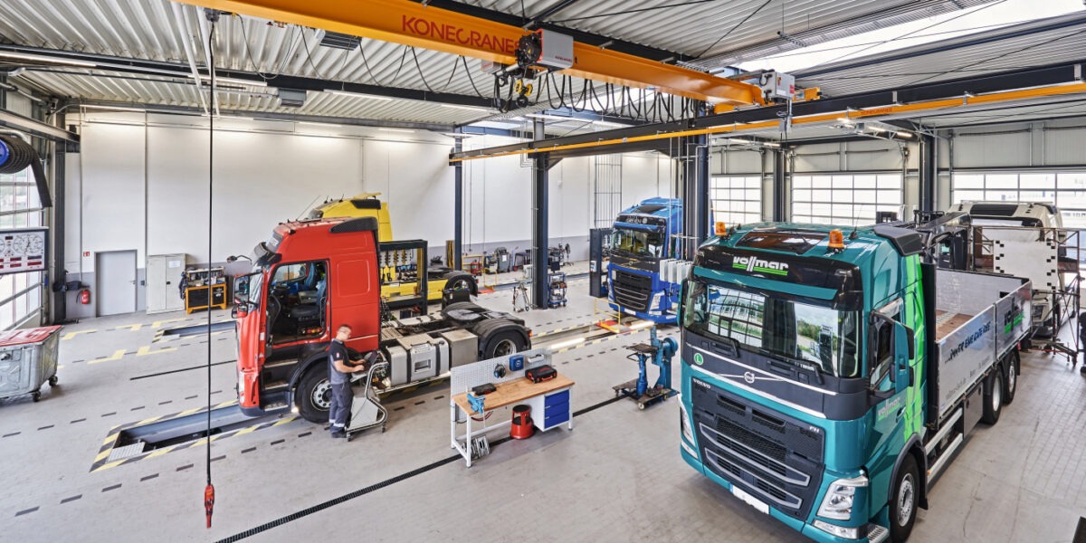 Arbeitsgruben, Hebezeuge, Liftkräne, Gasarbeitsplätze und vieles mehr. In Betrieben für den Service, die Reparatur und Wartung von Nutzfahrzeugen kommt es auf die Technik an. „Damit die Arbeit mit den tonnenschweren Fahrzeugen reibungslos läuft, muss alles ineinandergreifen: vom richtigen Spurmaß, über die durchdachte Integration der technischen Ausstattung, bis hin zu Lagersystemen und Öl-Entsorgungsmöglichkeiten“, so Projektentwickler Thomas Müggenborg vom Generalunternehmen Borgers, das sich auf die Planung und den Bau von Nutzfahrzeug-Zentren spezialisiert hat.