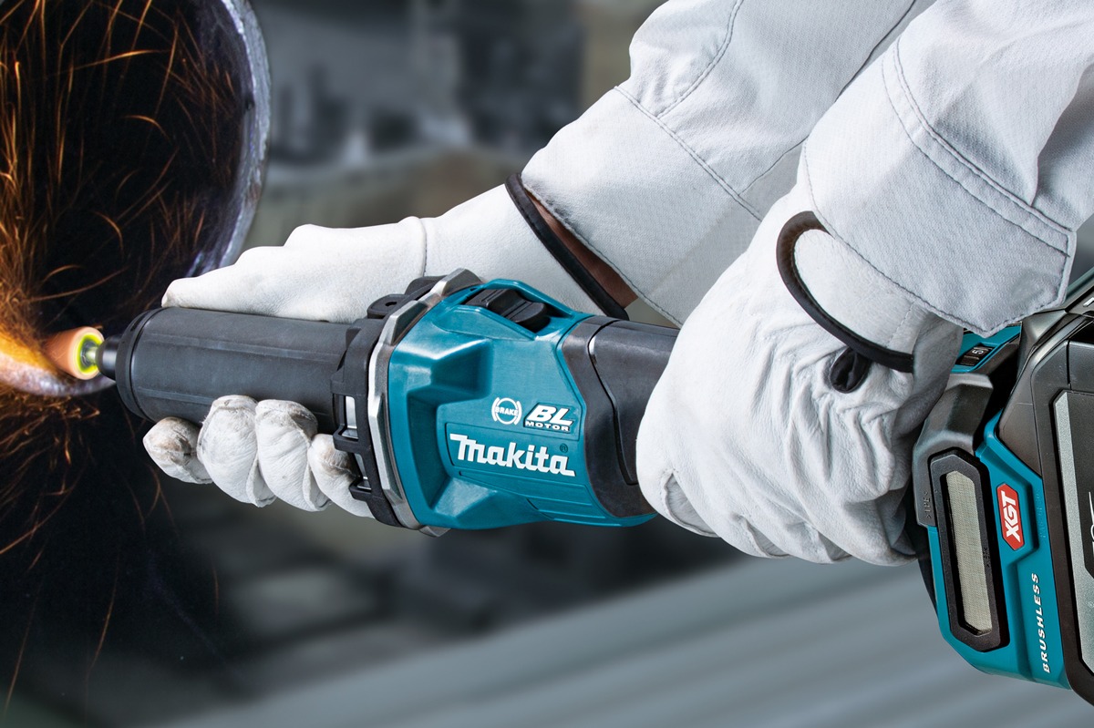 Makita hat sein Sortiment um zwei Akku-Geradschleifer erweitert. Die beiden Modelle GD001G und GD002G basieren auf der ’40V max. Akku-Technologie‘, kommen mit einer maximalen Drehzahl von 29.000 min⁻¹ daher und verfügen über eine Konstant-Elektronik, die dafür sorgt, dass die Drehzahl selbst unter Last stabil bleibt.