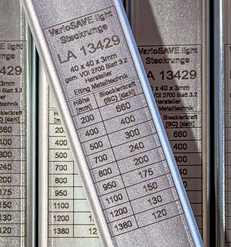 Elting hat die neuen VDI 2700-Vorgaben für seine Produkte bereits umgesetzt. Das Unternehmen versieht die Steckrungen für seine formschlüssigen Ladungssicherungssysteme VarioSave Basic und VarioSave Light mit einer eindeutigen Kennzeichnung: „Wir setzen auf langlebige Lasergravuren. Diese ermöglichen es, die Inhalte der neuen Norm dauerhaft, präzise und gut lesbar direkt auf dem Produkt zu kennzeichnen.“