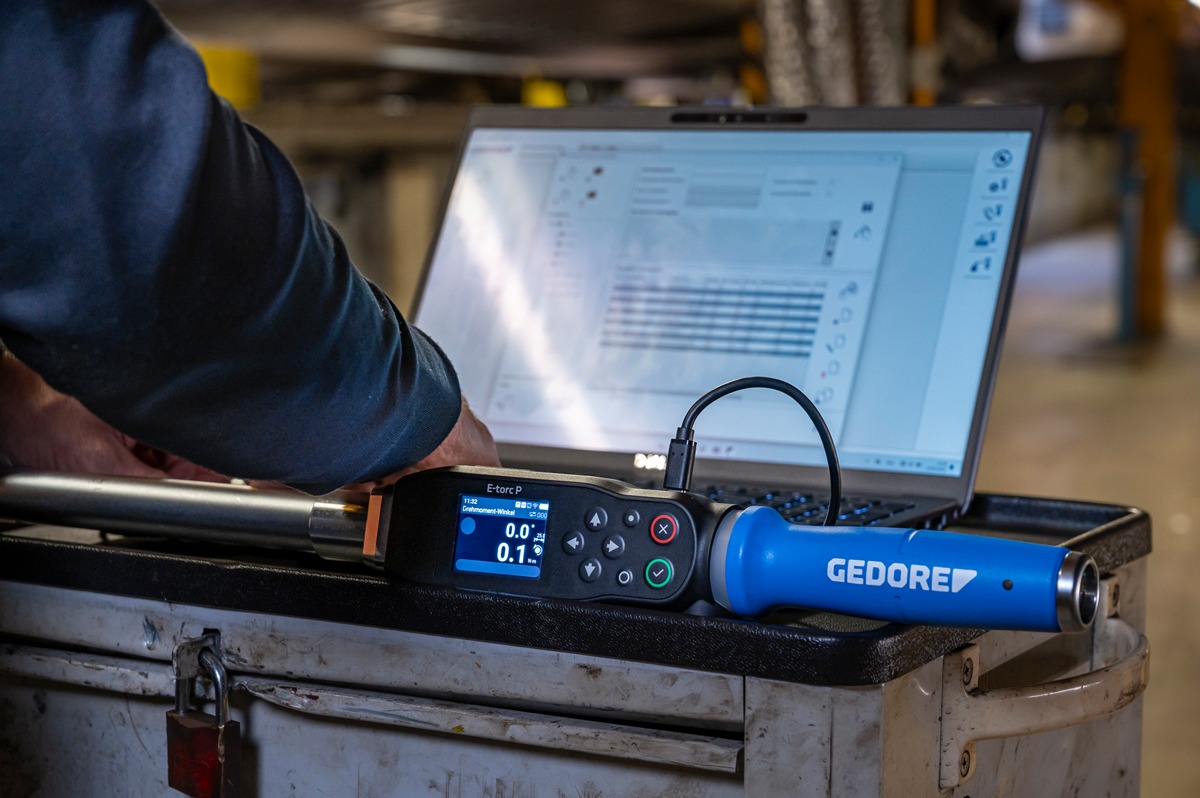 Gedore hat einen neuen, elektronischen Drehmomentschlüssel vorgestellt, um sicherheitsrelevante Verschraubungen während der Wartung und im Service dokumentiert durchzuführen. Mit einer äußerst präzisen Messgenauigkeit von ±1 Prozent bei Drehmoment und Drehwinkel bietet der ‚E-torc P‘ eine zuverlässige Erfassung und lückenlose Rückverfolgbarkeit von Schraubverbindungen.