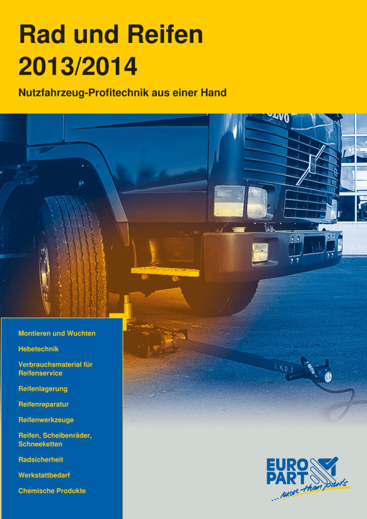 Europart (www.europart.net) stellte seinen neuen Katalog ‚Rad und Reifen 2013/2014’ vor. Auf 78 Seiten präsentiert der Spezialist für Werkstattbedarf und Nutzfahrzeugteile sein umfangreiches Rad- und Reifensortiment mit ausführlichen technischen Erklärungen und konkreten Hilfestellungen sowie Werkstatttipps.vor. Auf 78 Seiten präsentiert der Spezialist für Werkstattbedarf und Nutzfahrzeugteile sein umfangreiches Rad- und Reifensortiment mit ausführlichen technischen Erklärungen und konkreten Hilfestellungen sowie Werkstatttipps.