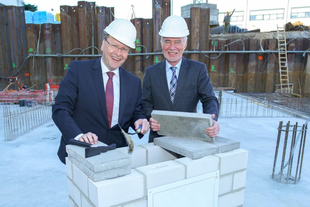 Der Zulieferer und Systemspezialist Wabco baut an seinem Standort Hannover-Linden ein neues Engineering Innovation Center. Den Grundstein dazu haben Jürgen Heller, Geschäftsführer von Wabco Deutschland (links) und Dr. Christian Wiehen, Chief Technology Officer, vor Kurzem eigenhändig gelegt.