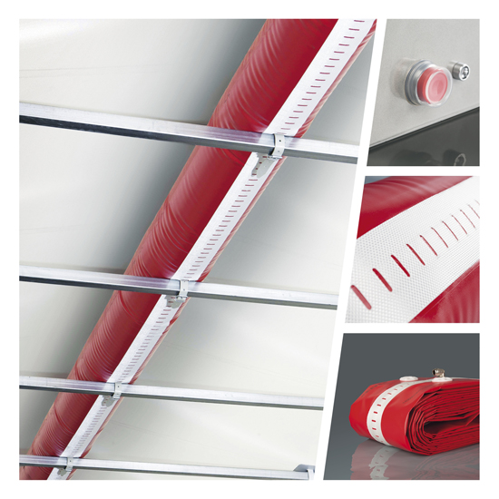 Die Befüllung erfolgt bei Bedarf schnell und einfach per Knopfdruck mit nur 0,05 bar über eine Steuereinheit an der Stirnwand und ist auch bei abgesatteltem Trailer möglich. Der Druck im Schlauch wird durch das System kontrolliert und automatisch nachgeregelt. Vor Fahrtantritt wird das System innerhalb von vier Minuten evakuiert, ebenfalls auf Knopfdruck an der Steuereinheit oder durch Betätigung der Bremse. Durch das entstandene Vakuum im Schlauch lässt sich das RSAB-System auch bei Schiebedächern einsetzen.