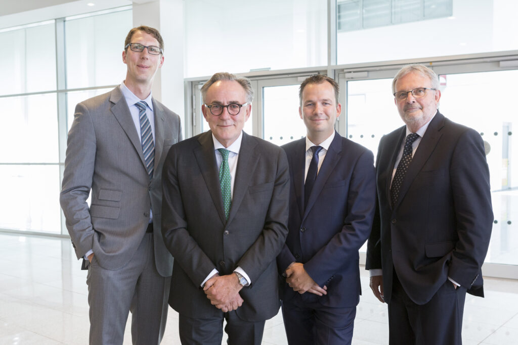 Generationswechsel im Reifenfachverband BRV (von links): Yorick M. Lowin, neuer Geschäftsführer, Peter Hülzer, geschäftsführender Vorsitzender a. D., Stephan Helm, ehrenamtlicher Präsident, Hans-Jürgen Drechsler, Geschäftsführer. Bild: BRV